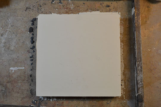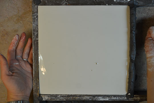 - un carreau engobé et émaillé sur la moitié (pour voir la différence entre l’engobe non-émaillé et émaillé)