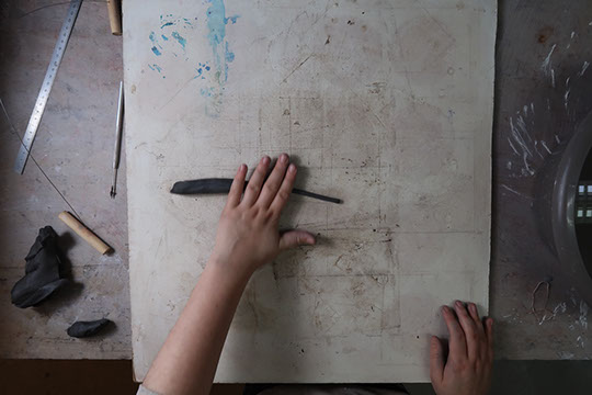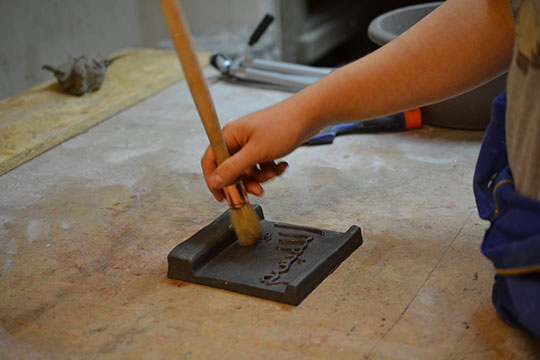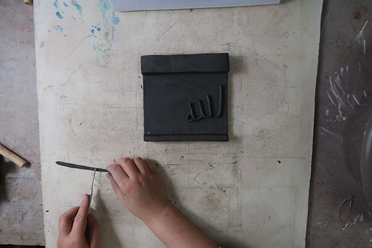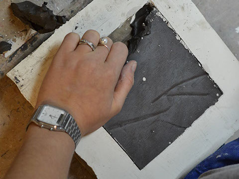 En réponse à cette problématique, et pour mieux expliquer la fabrication du carreau au public, nous avons décidé de faire des moules à carreaux d’estampages, d’en faire des tirages et ainsi de montrer les différentes étapes de fabrication.