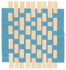 Si l’on s’intéresse au textile vert issu du tableau par exemple, on peut supposer que la trame est un fil résistant, opaque et mat, comme le lin et la chaine un fil beaucoup plus brillant, de la soie. Se ton les armures utilisées pour créer le textile, on va pouvoir avoir différent jeux, différents rapports entre les fils de chaine brillants tantôt recouvert par les fils de lin, et tantôt découverts pour refléter la lumière. Parmi les armures dites « fondamentales », deux