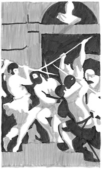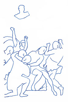 De plus, les lances se regroupent, se croisent ode manière claire et rapide, sans « déviation » (leur rencontre est directe, le regard ne se perd pas, il est dirigé rapidement). Cela témoigne peut être de la brutalité de l’action, de la violence des gestes des bourreaux.