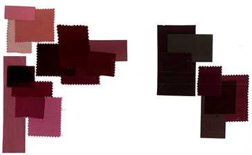 Nous venons de voir comment la couleur pouvait créer la lumière, et les liens qui unit picturalement ces deux notions ; mais ici, avec cette sélection d’échantillons textiles divers, nous pouvons aisément remarquer la liaisons étroite qui semble d’emblée se créer « physiquement » entre le textile et la lumière... comment, à l’époque du Titien et aujourd’hui, les textiles captent ils, jouent ils, se reflètent ils à la lumière ; et comment la couleur interagit elle avec celle-ci ?