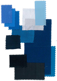 Ici nous avons juxtaposer des aplats colorés provenant de notre gamme de couleur avec des échantillons de divers textiles. Il apparaît flagrant que, plus que la couleur, c’est la texture de certains textiles, par leur brillance qui interagissent le plus avec la lumière.