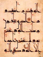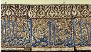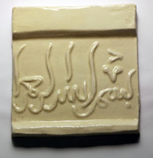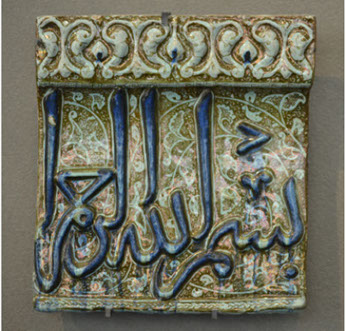 La calligraphie utilisée sur ce carreau est une écriture cursive : le Thuluth. Il se caractérise par de hautes hampes et est souvent utilisé pour les titres des sourates.