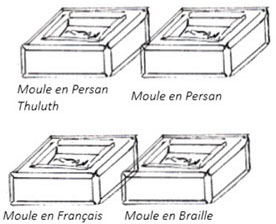 Comme nous avons fait ces quatre différentes traductions, nous avons choisi pour toutes, de faire un moule et ainsi pouvoir avoir des tirages de chacune.