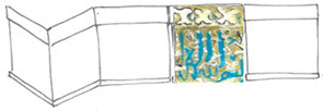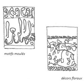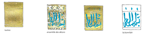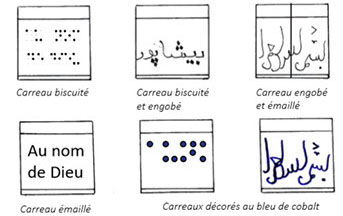 En partant du carreau, nous nous sommes rendus compte que certes, l’écriture avait un aspect sémantique fort mais que la calligraphie (persan, thuluth) avait été traitée comme un motif, a n d’occuper le plus d’espace possible (hautes hampes) en respectant l’esthétique de la peur du vide.