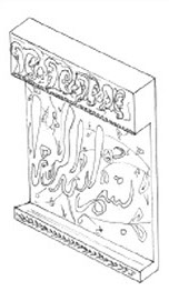 L’inscription du carreau est tirée d’un vers du célèbre Shanama (le Livre des Rois). Celui-ci est un poème épique retraçant l’histoire de l’Iran depuis la création du monde.