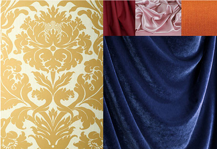 - le choix raffiné de ses coloris savamment juxtaposés, aux multiples nuances de rose, de lilas, parme, vert amande, ou anisées, bleu pastel, bleu azur, gris perle ou jaune. Tissu damassé