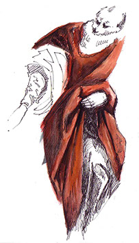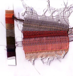 Nous avons repris les couleurs du tableau et plus précisément le camaïeux de rouge de l’habit du vieillard du centre ainsi que de l’étoffe de Suzanne et nous avons tissé avec différents fils afin d’apprécier les différentes qualités de matières.