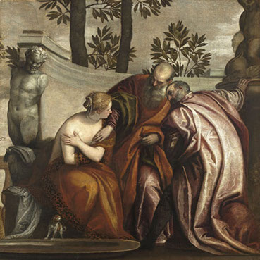 Suzanne prenait bien soin de n’y entrer qu’en fin d’après-midi lorsque plus personne ne s’y trouvait et pouvait ainsi profiter de sa fraîcheur. Or deux Anciens, épris de désir pour elle, s’arrangeaient pour la croiser régulièrement et un jour, s’étant concertés, ils se cachèrent dans le jardin, sachant que Suzanne allait arriver. En effet peu de temps après, la jeune femme y entra et désireuse de se baigner, car il faisait chaud, envoya ses deux servantes chercher l’huile et les onguents nécessaires à sa toilette. Les servantes s’assurèrent que la porte principale était bien fermée puis sortirent par la porte dérobée de l’arrière.
