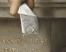 La dentelle, présente à l’encolure et aux poignets de Melchior von Brauweiler, est un signe d’aristocratie : elle dépasse de sous ses vêtements (elle vient du linge de corps), ses plis et ses volants neigeux mettent en valeur la somptuosité austère des tissus d’habits. La dentelle était, à cette époque, un détail de luxe, très demandé et apprécié, qui était réservé à la bourgeoisie. C’est d’ailleurs à l’époque de la fabrication de ce tableau que la dentelle était sujette à un fort engouement, nourrit notamment par les marchands italiens ; l’atelier de Titien (rappelez-vous que c’est avec lui que Calcar s’est formé...) créait même des motifs de dentelle.