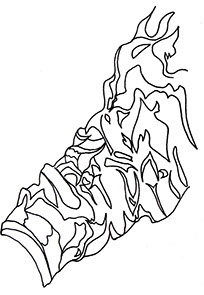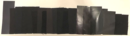 Dire simplement que le costume est noir est faux : il comprend de superbes nuances de noir, dont on peut citer le noir chaud tirant vers le bordeaux des manches, le noir bleuté, plus froid, du veston, et le noir plus intense, profond des motifs du veston. Ces noirs ont également une matière : le noir des manches est lisse et brillant, le noir du veston est lisse et mat, le noir des motifs est mat et opaque, le noir de l’épée est lisse et laqué... Il n’existe pas un noir, mais plutôt une infinité de noirs. Calcar joue de cette diversité des noirs, joue avec le ton sur ton, afin de donner l’impression au spectateur de pouvoir toucher ces textiles et de ressentir leur texture. Le peintre s’est servi des plis formés par l’étoffe pour renforcer cette perception des matières textiles : c’est un indice qui aide beaucoup à distinguer la nature des étoffes. La manière dont Calcar représente le textile, avec tous ses plis jouant sur l’ombre et la lumière, fait de l’étoffe quelque chose de sublime, et nul besoin de motifs pour qu’elle le soit...