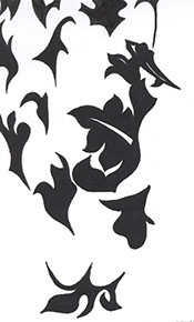Nous pouvons relever des motifs sur le veston, réalisés en velours d’un noir profond. Il s’agit d’un motif floral, composé de volutes aux fortes évocations végétales.