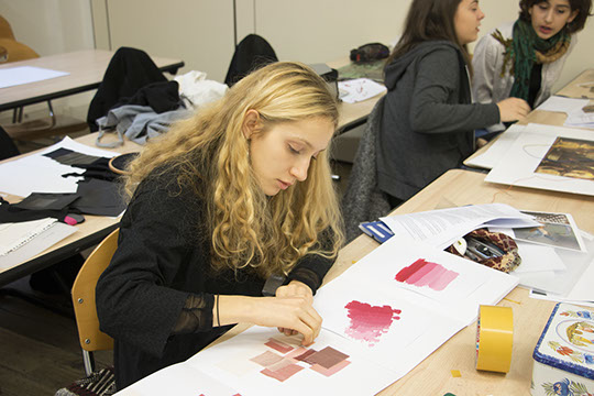 À l'occasion de l'événement les "Jeunes ont la parole" organisé par le musée du Louvre, les élèves de première année de la classe de DMA textile de Duperré ont préparé de multiples échantillons et dispositifs visuels pour illustrer leurs propos. Chaque couple d'élèves, s'est constitué un dossier mêlant images, aplats de couleurs, dessins, fils, échantillons de textiles, afin d'aider à une meilleure compréhension des tableaux étudiés.